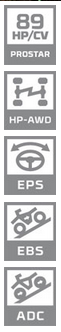 Servolenkung (EPS), 14 Zoll Aluminiumfelgen, Anti-Rückstoß-Lenkung, Doppelauspuff, zuschaltbarer Allrad, Motorbremse ADC, Bergabfahrhilfe EDC, Gepäckträger, FOX-Sportfahrwerk